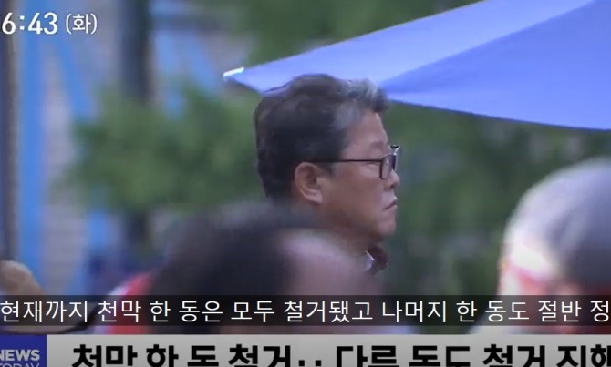 현재 천막 한 동은 모두 제거되고 한 동도 절반 정도 철거가 진행되고 있다.