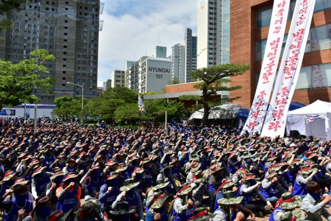 현대중공업 노조는 지난 23일 울산 본사에서 열린 임시대의원회의에서 기본급 184만8460원의 1.2%인 2만1281원으로 책정돼 있는 노동조합비를 통상임금 388만5420원의 1%인 3만8854원으로 인상하는 안건을 표결에 부쳤으나 의결 기준인 66.66% 찬성을 넘지 못했다. 결국 61.85% 찬성(60표)에 그쳐 안건이 부결됐다.