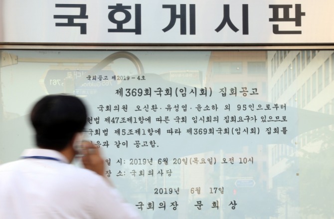 더불어민주당과 바른미래당, 민주평화당, 정의당의 소집 요구서 제출에 따라 이날부터 6월 임시국회 회기가 시작된다.